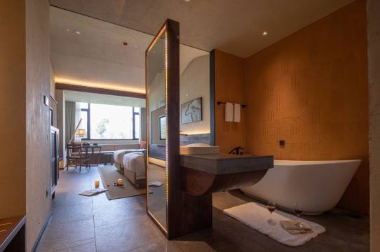 假期陪父母旅行,订了莫愁渡酒店,酒店在景区里面,简直太惊喜了,酒店格调古朴典雅,前台小姐姐温柔有礼貌,看到我们有老人行走不便,贴心的帮我们升级房间,房间很大很干净,智能灯光系统很高级,每天我们出去游玩摆渡车不厌其烦的接送,还有酒店早餐也很丰富,真是一次愉快的经历,下次来一定还会选这里住。