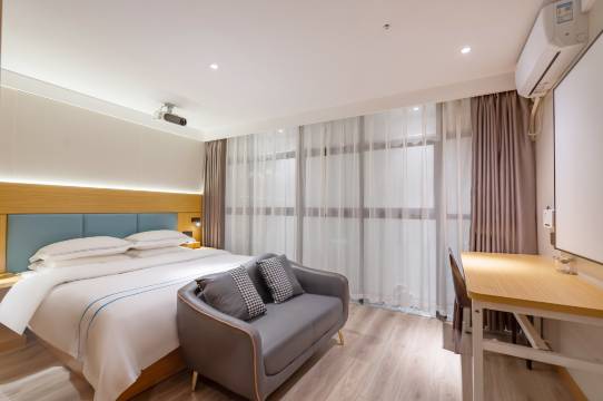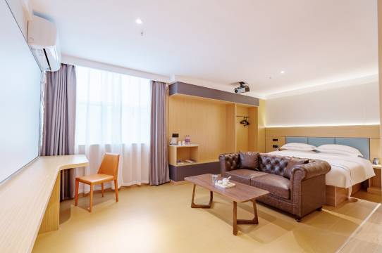 酒店蛮好,很干净,被子挺舒服的,有一次性马桶垫,消毒湿巾,就很贴心。就因为有客人说起不来吃早餐,酒店把早餐时间延迟到11点,就很奈斯!投影仪的房间,无窗但是假窗户也装修成落地窗,没有压抑感!很赞的酒店。
