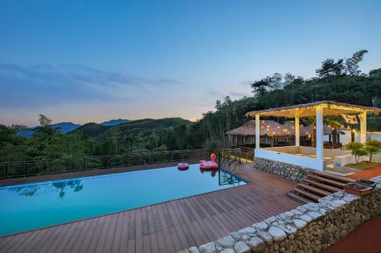 房间很大很干净,山景房视野开阔。楼下有游泳池小孩可以玩水,可以烧烤,还可以去走走山路,适合亲子出游惬意度假。