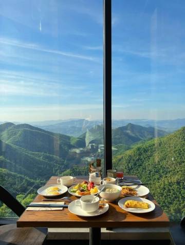 我们选的房间落地景观窗很出片,只可惜当天下雨又大雾,用手机基本很难拍出来,不过还是感受了一下仙境。