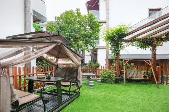 住了三天真得很满意,阳台房很宽敞,很干净无异味,店家服务的很贴心配套都是一次性的,毛巾浴巾马桶套大人小孩的拖鞋连扎头发得皮筋都备着,入住了就发了旅游攻略,公交车站就在边上,花园里有两只纯黑得猫咪超可爱的,大厅还有小孩子的乐高玩,谢谢招待再来杭还会选择