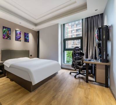 尖峰电竞酒店打造中高端酒店舒适的入住体验和年轻快乐健康的电竞文化,为电竞爱好者提供舒适睡眠体验的同时,畅想游戏乐趣。本店电脑配置全系3060、4070显卡,HKC XG272Q电竞大直面屏显示器,统一上置风冷机箱,专业罗技鼠标,专业级电竞椅,住的舒适,玩的舒心。