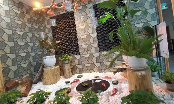 “听风听雨听瀑布,蝉鸣鸟语享人生”。民宿位于贵州省安顺市国家5A级黄果树风景名胜区核心区域,毗邻黄果树大瀑布景点与天星桥景点,从民宿前行可以抵达上帝之眼(霞客观瀑台),从陡坡塘瀑布步行15分钟就能抵达民宿。民宿依山而建,环林而生,可闻瀑声,可享登高。其傍身于壮美大瀑布,沐浴于金街银雨中,浸泡在负氧离子里,包裹在密林蝉语中,轻奢休闲的配属了各类客房(大部份设计成大空间卫生间)及相配套的自助歺厅、休闲茶室、娱乐包房、亲子空间、文化书吧和免费停车场(配有充电桩),除提供洗衣晒衣和洗车设施外,还提供全天候大瀑布景区内接送服务。为减少装修污染源,室内采用简洁新中式原木风格,是一个配套全实木家俱(艾草助眠3D席梦思)的轻奢民宿。