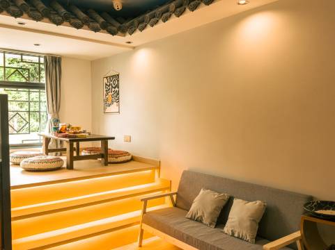 民宿汲取了日式的设计理念与艺术的文化沉淀,将艺术和功能结合得十分紧密,主打的日式轻奢整体风格,并致力于将艺术与人居完美结合,力求传递给消费者舒适的家居感受。远离城市喧嚣,让惬意的生活变得多姿多彩。