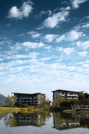 民宿室内空间秉承对自然的认识和客户度假体验的坚持,设计团队将“嵌入乡村的精致度假”的产品理念融入全案动线和整体室内的设计思想,从进入高桥到驻足休息厅,穿越湖光山色的景观区域,进入酒店大堂,整个动线从动到静,再由静到动,曲折迂回,抑扬顿挫,调动客人从到高桥开始直至进入客房后对产品价值的认可。项目规划总计约2388亩,崇尚自然健康的居住理念,皆采用行业超高标准环保材料。客房选用全球高端酒店床品,全域高速WIFI让宾客畅行网络,更有超大观景阳台,山水景致入室,尽享轻松愉悦。