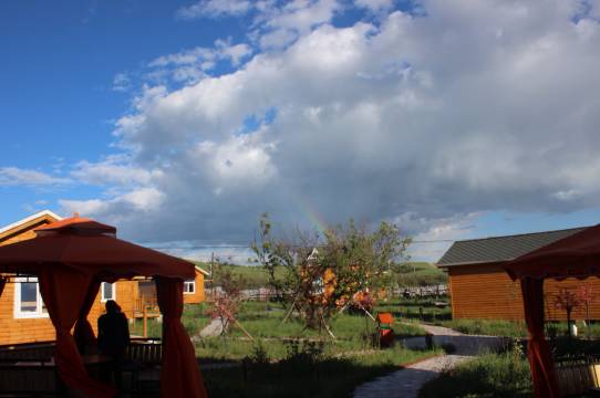 就在坝上草原深处,周围碧波荡漾环境宜人,木屋设计别具一格价格虽有点小贵但在旅游旺季也还算正常,本人很推荐这种亲近自然的风格哦!
