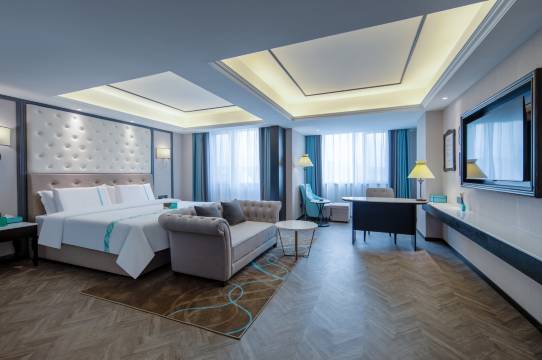 酒店离九龙湾公园很近,停车免费也很方便,服务人员态度也很好,提了要求反应很快,还给我们免费升了房。虽然是很多年的酒店了,但是也有小度可以进行语音控制家电。唯一一个建议是可以在房间里面增加一个小冰箱。