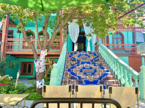 该建筑由完整的三层主体老建筑构成,双楼梯双入户走廊,结构大气对称,就是在整个喀赞其以及伊宁地区也很少见,其原址是喀赞其地区内首富的家,无论院子还是主体建筑都修建的非常有特点。最适合想来体验新疆当地文化的旅行者入驻体验。