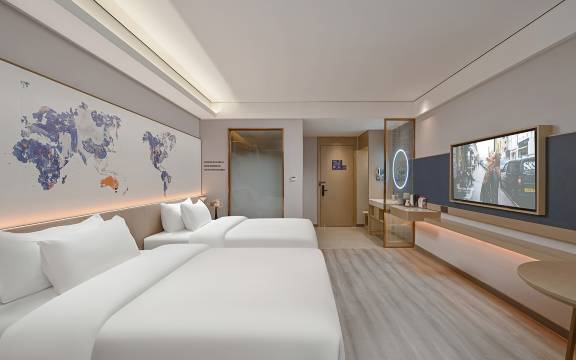 酒店靠近车站,交通出行很方便,距离万达广场近,游玩也很方便。房间不错,很智能,卫生干净,布局舒适,前台美女服务热情,住的很好,早餐丰盛,口味丰富。