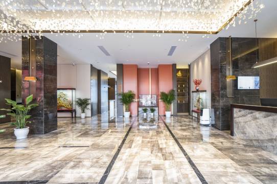 酒店大厅整洁干净,前台工作服务人员态度热情周到,停车场非常便利,宽敞,坐落在石浦镇商业中心区。出门就餐各家海鲜酒楼海鲜丰富,还会再来,唯独洗衣服太少希望洗衣机烘干机可以多配两台😁。