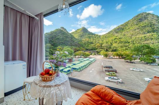 房间环境干净整洁,住的舒服,老板娘热情,服务嘎嘎好,拉开窗帘就是大山,景色优美,位置也不错,景点就在附近,住的吃的玩的,去哪都方便。