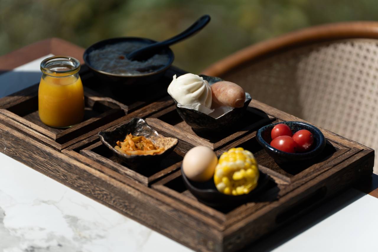 非常安静!很干净!管家服务很好!自己带的围炉煮茶在阳台,很惬意很舒服,放假的阳台是落地窗,窗外景色很美,走出去是一个小阳台,有一个躺椅可以躺着风景.:四楼是私厨,粤菜菜系可以点菜送到房间!楼下还有公共区域玩,就住了一个晚上感觉下次可以多住几天!非常好!推荐