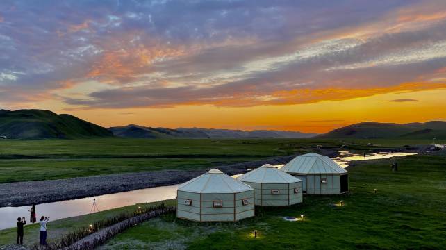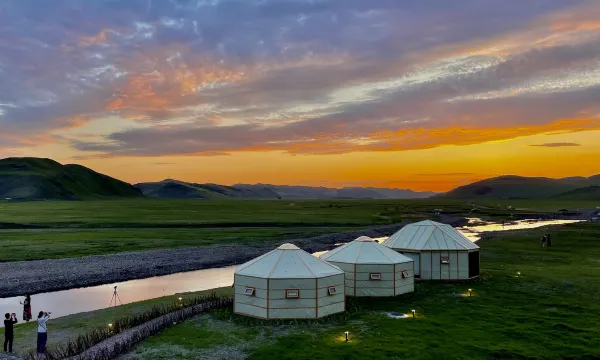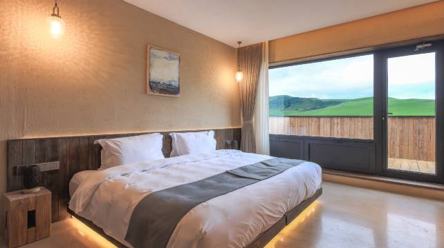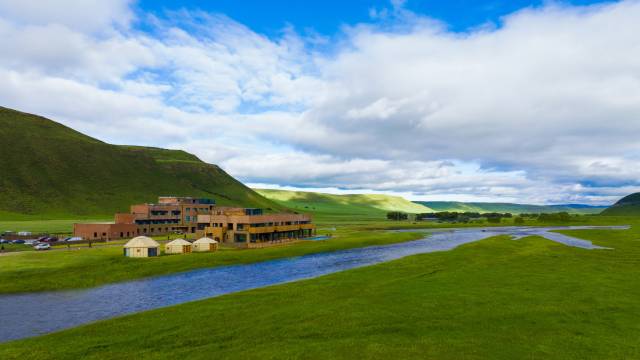 “离别城市之外,身隐山水之间”,这里天蓝欲滴,碧草如翠,抬头便是璀璨星河,回眸便是草原牧歌,河谷酒店坐落于全球稀缺的乌兰毛都杭盖草原深处;游牧文化与自然野奢的结合,亲身感受草原的生灵奇境。建筑整体的设计清新自然,运用原木、石材等自然元素,风格各异的房间等待亲身探索。