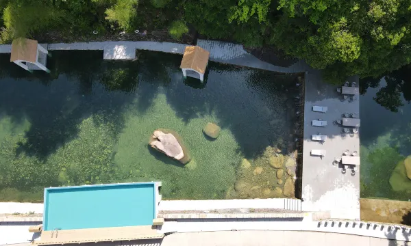 民宿位于温州文成县,独享千亩森林溪谷。清澈纯净的山泉瀑布溪流穿行其间。同时拥有多个天然山泉泳池和浪漫的无边泳池。无外品牌由知名设计师在上海创立,有众多中外明星和剧组打卡取景拍摄。无外山谷度假村四季风光如画,流水潺潺,茂竹修林,古树石屋,仿佛置身世外仙境。