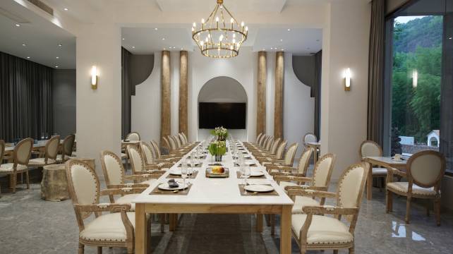 山谷所有客房临水傍山而建,大幅全景玻璃窗朝起看山间云雾缭绕,入夜望苍穹满幕星空。客房配有大浴缸、智能马桶、高端洗护用品等设施。山泉水直接入户。民宿有质朴古典唯美的活动大厅,可接待各类聚会团建活动。立体景观无边泳池建于溪流之上,和山水融为一体;民宿餐厅包间,KTV私人影院、桌球厅,划船,烧烤,棋牌等设施一应俱全。
