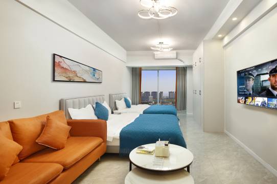 房间设施很新,床软硬刚刚好,躺上去瞬间放松。卫生间干湿分离,洗浴用品品质也在线,晚上还能在小沙发上惬意追剧,超满足!