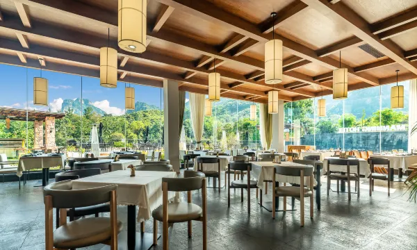 漫宁民宿:山石·迹 环山而建,风景优美,气候宜人,交通便利,集自然风光、人文景观、民俗风情、休闲于一体。 酒店坐落于山林深处,每个房间都具有独特不同风格,有温馨可爱,简约时尚,还有充满了浪漫气息,这里还有丰富多彩的活动,如咖啡下午茶、陶艺制作、西点DIY, 西餐厅、烧烤晚会、游泳池、棋牌室、KTV、泡池、等等。 三五家庭在山野拥有一小院,男士们负责做饭,女土们开心的聊天,孩子们在山野间撒欢畅游,我们打造了这样的社交空间,一楼公共大厅带厨房,满足3个家庭同时入住。 度假一定得带上家人和孩子,我们打造了家庭房,考虑到老人不愿意睡软床一楼配有床垫比较硬适合老人的标房,二楼两个大床房,最幸福的度假时光应该一家人在一起。看山的全景,我们制定了全景落地窗房。 一栋小楼有多间房适合团建轰趴等亲子活动。 我们觉得度假要让孩子开心,我们做了儿童主题房,可以体验海盗的勇猛,放荡不羁。可以在森林中遥望星空,可以是可爱的公主,或许一觉醒来我睡在太空舱。 品尝咖啡,带有诗和远方在山野间听着溪流,听着鸟鸣,这喝的是一杯咖啡嘛。星巴克咖啡大师在太行山最绿的地方开了一间咖啡屋。 在这里您可以享受到悠闲下午茶时光,留下难忘的记忆。 我们觉得度假餐也不能随意将就餐厅做了主打西餐中餐融合菜满足儿童女士老人用餐需求。 此外,我们酒店内的食物精致可口!提供的是丰盛美味早餐,晚餐则是采购当日新鲜的食材,在充满情调的餐厅享用。 您的公司需要一个高端商务会议,我们做了全景会议室,办公可以是这样的,在山野间听着溪流婵婵喝着咖啡,看着股票在涨等等。