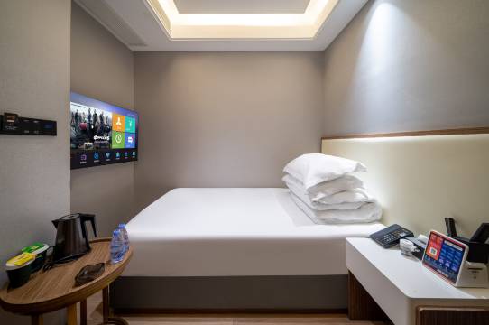 真的要给这家酒店打满分!从进门的那一刻起,就被前台工作人员的热情和专业打动,办理入住速度超快。房间的布置温馨又精致,采光特别好,床品柔软舒适,,卫生间干净无异味,细节感拉满。闲暇时在大堂休息区坐坐,有咖啡还有茶水,环境安静又雅致,工作人员还会主动送上温水。住了几天下来,全程体验感绝佳,不管是硬件设施还是软件服务都挑不出任何毛病,性价比超高!下次来这边出差,一定还选这家[强]
