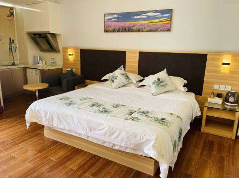 位置很好,吃饭、购物、岀行都方便,前台位于公寓对面的珠江琴行,前台服务人员耐心周到,房间平时的性价比还可以。