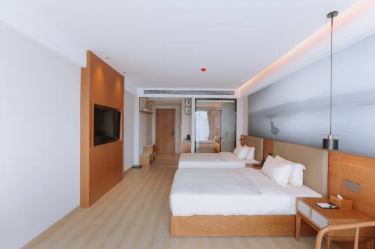 当您出差或游玩尽兴之余,酒店精细设计的不同系列的湖光山景客房,会为您带来一丝丝温暖与舒心。其中有大床房、标间、亲子房,酒店不仅满足您雅致静谧的个人需求,还为尊贵的您设计了两个会议室可容纳180人左右,满足您日常团队培训、商务谈判、签约发布、团队拓展等交流活动的专业场地需求。