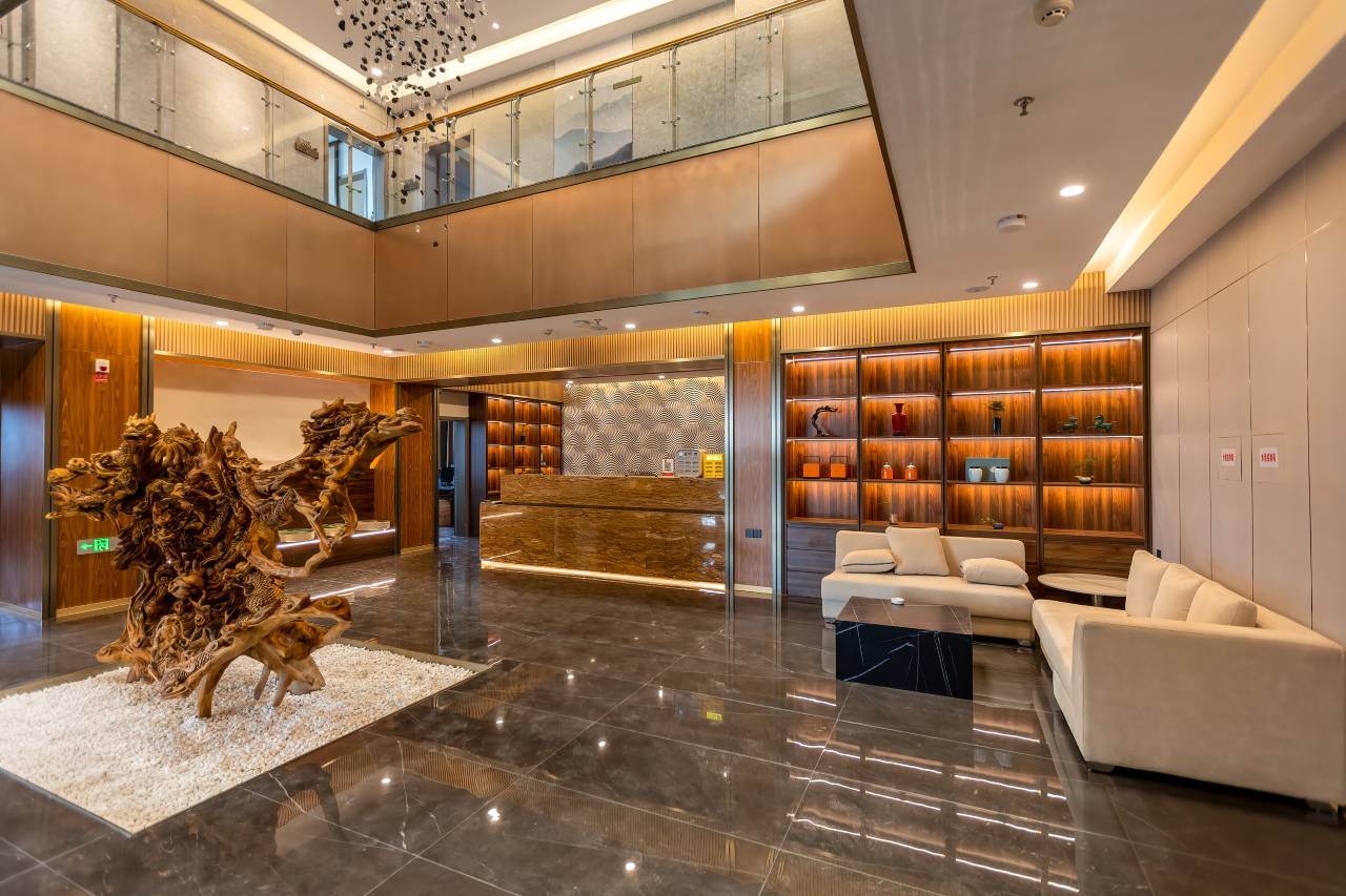 酒店坐落于福鼎市太姥山风景名胜区内,是宁德旅发集团打造的精品度假酒店,占地面积6000平米,东眺东海,西望太姥山,园林布局,太姥山标志景点“玉湖樱花”环抱在酒店庭院内。酒店整体建筑仿古、仿木、仿民居,屋檐瓦石间,透露着美学与信仰。酒店周围茶园、森林及多座名寺古刹环绕,景区大巴车停靠站点距离酒店很近,太姥娘娘雕塑广场距离酒店便捷。