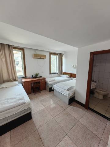 位置很方便,下船右拐没走多远就是。左边就是广场,在2楼平台上可看见码头上停泊或靠岸归来的船,只是近海无浪,水和空气可能没有浴场沙滩那么清,不是海边浪涌云阔的风景,更多的是码头生活气息浓些。周边饭店商店药房配套有,买东西较浴场方便。老板人没得说,热情,给免费升级了房间,还提出延迟退房,吃饭还送了菜。有点小小的意外,可以谅解,岛里物资什么都不如陆地方便。出来玩,不追求高标准酒店住宿条件,可以选择。