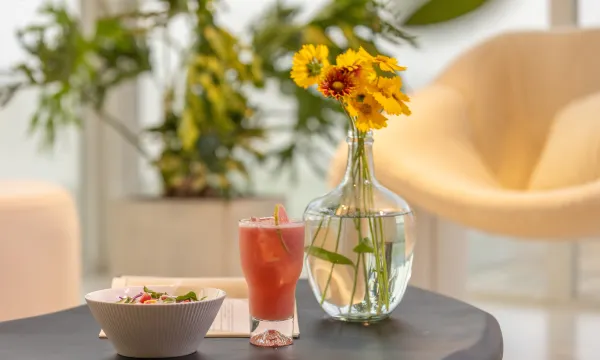 观景露台周围有粉色鲜花,落地窗干净透亮! 管家服务响应很快,问题马上解决,舒心又安心,超级赞~