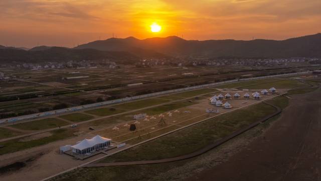 说要去岱山,刷到觅野仙踪,照片很惊艳,直接下订。果然经验!就在海边,细沙微风中,一个个白白的小帐篷像童话世界。我们订的是全海景套房,房间比较大,有大沙发,床垫也很舒服,设施算齐全,主要景观无敌呀!早上预报5:24日出,闹钟定5:20,响铃后开门出外拍照,拍完直接回房再睡,可以说是很赞的海景酒店了。