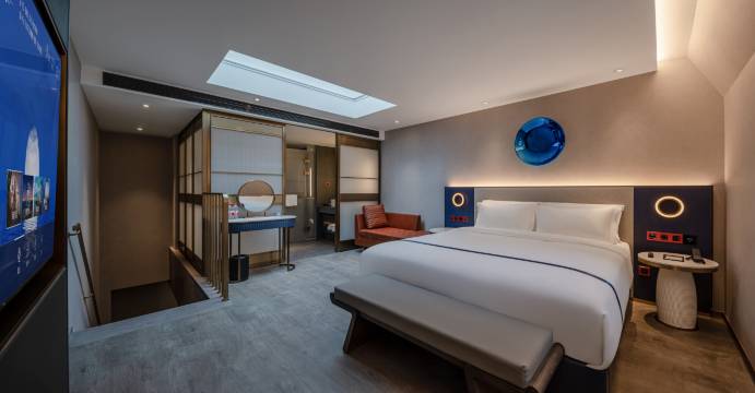 出差选枫渡太对了!位置核心,办事逛街都方便 。大堂ART DECO设计简约高级,房间宽敞明亮,隔音超棒,智能客控一键控灯、窗帘,慕思床垫软硬适中,睡得踏实;卫浴干湿分离,淋浴水压稳。前台贻贝响应及时,入住退房顺畅,细节拉满。下次来本地出差还选这里!