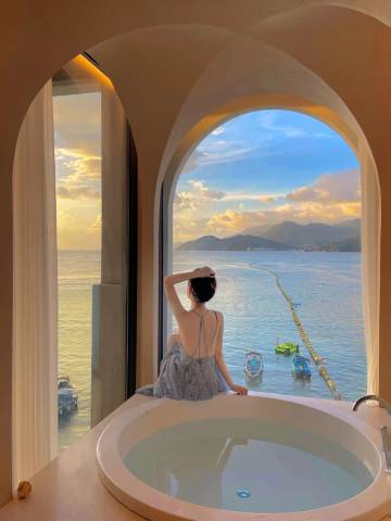 订的房型太合心意,自带浴缸泡着超舒服,推开门就是海景阳台,吹着海风看海天一色,和闺蜜唠嗑拍照超惬意~