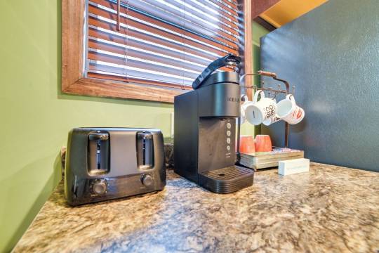 此乡舍配有空调,提供壁炉,让您可以尽情放松享受。厨房配备了烤箱、炉灶和微波炉。便利服务设施包括洗衣机和吊扇。