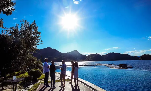 金海湖壹号酒店位于金海湖碧波岛度假区内,美式田园风格,酒店面积14750平方米。整体造型独特,外部装饰大量石材,仿佛是“山里长出来”的酒店,所有客房皆可180°观澜湖景。碧波岛内配套多项娱乐设施,射箭、水上高尔夫挥杆、自行车环岛骑行、水上皮划艇、浆板、哈瑞斯迎宾船、室内外儿童乐园、动物长廊、彩虹滑道、水上飞人表演、直升机观光、捉泥鳅、儿童UTV等。并且是京郊露营胜地,岛内超30万平米的草坪均可露营,给您提供一个安静静谧的露营地。