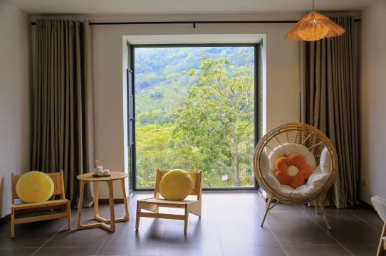 环境清幽,房间宽敞舒适,设施一应俱全。大大的落地窗就像住在风景里。节假日周边休闲游的好去处