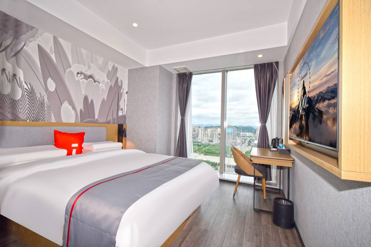 酒店客房整体装修风格简约、时尚、新颖,环境舒适宜人,并且配备智能机器人小U为您服务。拥有优享大/双、影视、电竞、棋牌等多样化房型,每个房间配备智能客控、空调、高速WIFI、独立卫浴、24小时热水、国内直拨座机、网络电视,房间设施设备齐全舒适,简约而不简单,每个房间都能给您带来不同的入住感受。