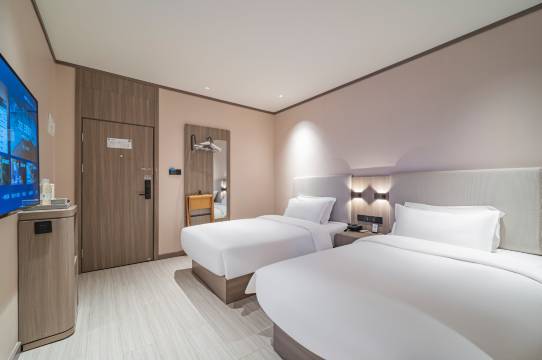 设施比较新,房间大体很好,投屏也很好用,适合在酒店瘫的。靠近里面的房间很安静,位置也不错。就是高级双床房也很小,让人怀疑像个标间哈哈哈哈