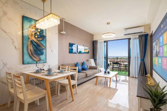 带着老人孩子,两房的空间很大。一家人住着都比较满意,不值得温馨舒适,房间还可以看海哦,很方便。