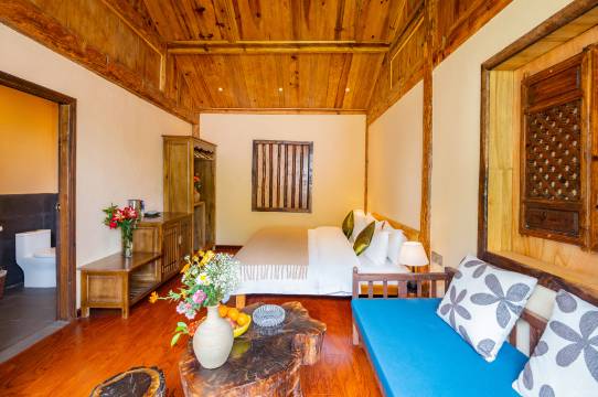 房间视野开阔、温馨整洁,院落典雅有致、清幽澄静,既可在窗前看独属云南的蓝天白云 、晴空万里,亦可在院中品一壶茗、读一本书,享受慵懒的午后时光,或者尝一下本地自酿的葡萄酒,微醺中,抬眼是天边橘色的晚霞,等着夜幕落下,看高原明亮的星星出嫁。