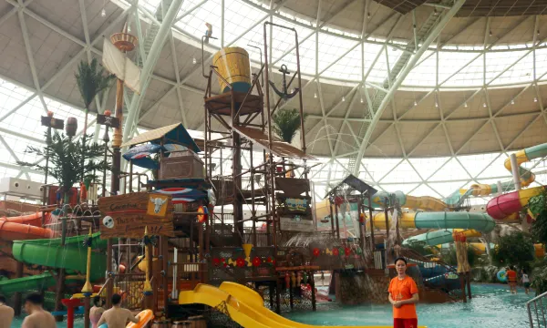 服务好,环境优雅,很安静,地方很大,车可以开到房间楼下,大厅出来右转就是入口,简直太方便了。套餐包含了两大两小酷玩王者,太划算啦~我们两个1.4以上的,所有项目通完。主要是没人,全程不用排队。两天玩了所有项目,小孩子特别喜欢飞舟冲浪大摆锤空中飞椅,玩了好多遍。里面的工作人员态度也好好,摩托车表演的小哥哥还邀请孩子坐摩托