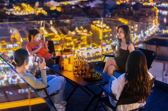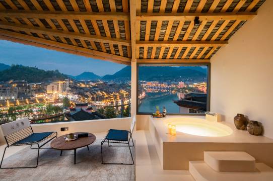 最爱的是顶楼露台!直面舞阳河和群山,白天喝茶看景,晚上吹着风看古城灯火,治愈感满分💯