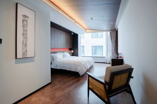 这个民宿还是很有格调的,风格简单大方,装修的很精致,很有空间感,服务人员也很热情。刚好前几天下来雪有点到了雪有点的感觉!