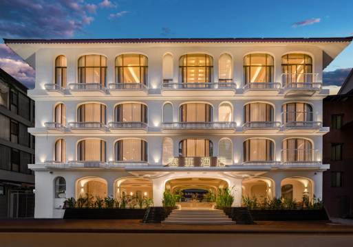酒店外观就很吸引人,白色的建筑搭配错落有致的拱形窗户,每个阳台上还点缀着郁郁葱葱的绿植和娇艳小花🌺,傍晚灯光亮起,氛围感直接拉满,随手一拍都超好看,很出片!
