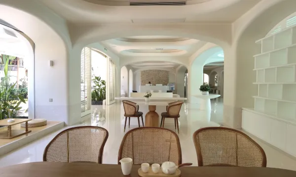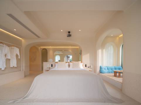 酒店是地中海风格,浅奶油色调,建筑不同弧度穹顶交错融汇,设计用心,做工优良,品正味醇,具有浓郁的异国情调。每个房型都具有独特性,空间功能布局合理,设施设备精良,床品舒适,灯光讲究,窗多窗大,阳光空气好。