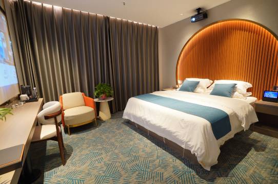 房间设施齐全,主题氛围感拉满,服务周到,送的小零食很贴心,还有免费的简餐和早餐供应,味道不错,是商务出差住宿的首选。