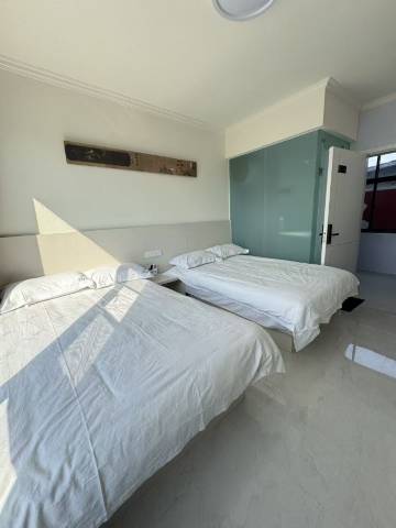 我们自己骑共享电动车到附近 离开区间啥的平台不给开了 然后我们两个人背着两个大行李 荒郊野外的 !有点害怕😱 但是老板人很好 还在酒店门口等我们 也给我们订了第二天的去车站的出租车!