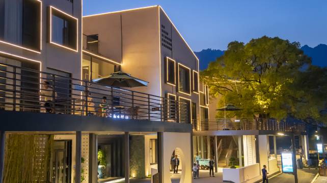 酒店位于上饶市广信区清水乡双溪村孙家,距上饶市区、清水老街较近。一期由11栋独栋楼房组成,设置亲子房、大床房、双床房、套房四种房型,配套恒温泳池、KTV、棋牌室、餐厅、小酒吧、健身房、深夜食堂、小影院、篝火广场。侧靠灵山环绕美景驻,前临小溪涓涓泉水流,空气清新环境怡人醉。一楼设置民宿中心、会议室、小酒吧、餐厅、瑜伽泳池、儿童乐园等;二楼、三楼设置主题客房、小型影院、书画坊、健身房、观景连廊等功能;四楼设置KTV、棋牌娱乐、观景露台,灵山环绕美如画,香樟树下清水宿。