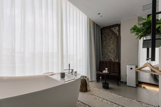刚到民宿外围看,感觉虽然交通方便,但环境很好比较清静,像是一个城堡,还有一条护城河流过,到城堡有两座桥,设计都很有创意,可以说处处都是美景。到了房间,里面的设施都很新,设计很现代,有落地大玻璃窗,外面的风景一览无余。还有智能马桶,电动窗帘,小冰箱,净化器消毒器,中央空调,空气能热水器等,前台小姐姐很热情,也很有耐心。客房阿姨也很专业,卫生打扫很干净。特别是老板很有亲和力,亲自接送我们到灵山景区来回,就像老朋友一样,一路上他还和我们聊了民宿的经营历程,我们都饶有兴趣,听着他说接手民宿的初心;接手清水仙宿目的就是“为了等待那些有缘人来这里相聚”,每一个来民宿的客人都是仙宿的朋友,亲人。希望在这里的所有客人能丢掉烦恼,丢掉所有的不开心,像得道者一样,处处感受这里的正能量,一起修行,一起疗愈,疗愈不完美的内心,抚慰曾经受伤的心灵,进入不喜不悲,保持内心平安喜悦的状态。