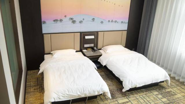 酒店不错,卫生很好,空间也挺大的~没订到大床房,双人间挺不错的。