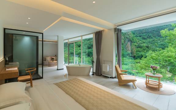 这次来阳朔,我一头扎进了与山民宿,这可真是一趟无比美妙的住宿体验!一迈进酒店,那清新的空气和满目绿意瞬间抓住了我的心。这里远离城市喧嚣,静谧得让人想静静发呆。房间布置得很温馨,全景落地窗将窗外的山峦美景毫无保留地展现在眼前,躺在床上就能把阳朔的山水风光尽收眼底。酒店的服务更是无可挑剔,从前台办理入住时的热情接待,到帮忙耐心规划游玩路线,再到入住期间的贴心关怀,每一个细节都让人觉得无比温暖。出行的话也很方便,酒店提供电动车。下次来阳朔,我肯定还选这儿!