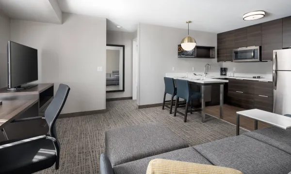 有 117 间客房提供微波炉和LED 电视;您定能在旅途中找到家的舒适。带有有线频道的 40 英寸智能电视可满足您的娱乐需求;同时提供免费无线网络,方便您与朋友保持联系。私人浴室提供免费洗浴用品和吹风机。便利设施包括书桌和茶具/咖啡用具,以及带有免费市内通话的电话。