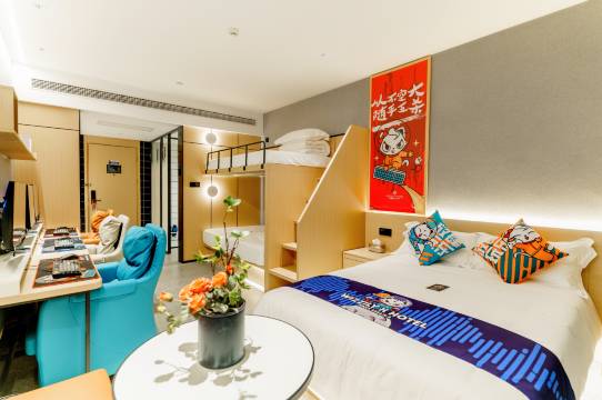 酒店是一家年轻潮牌酒店,面向所有拥有年轻之心的人群,旨在为新生代年轻人和商务旅行者打造的品牌,专为热衷游戏、社交、时毫犀利的猎趣一族量身打造。酒店大堂和公共区域由静到动,在这里你可以静若处子,动如脱兔,设计大胆前卫,腔调十足.